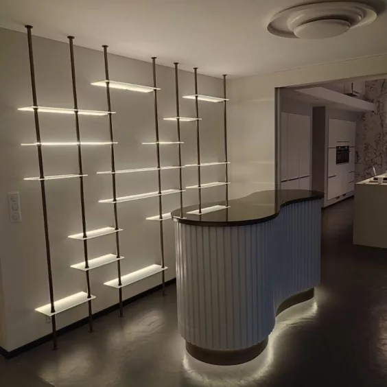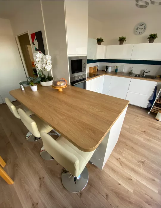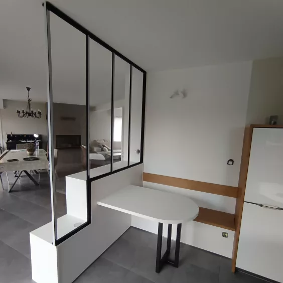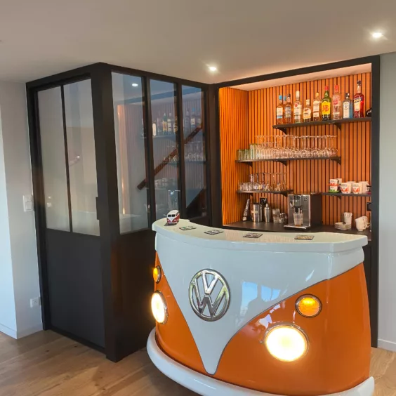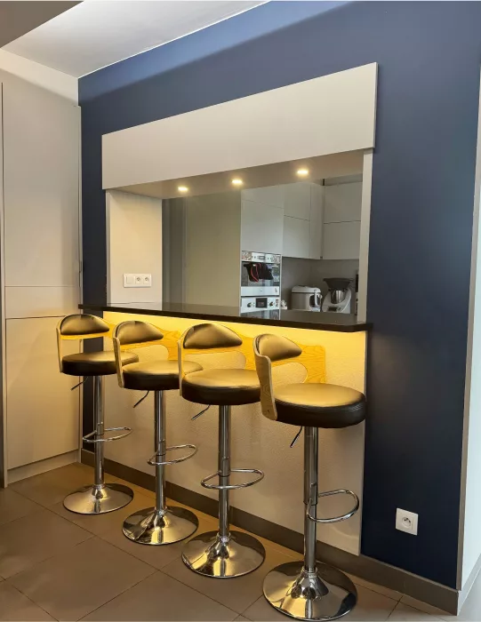 Un espace bar sur-mesure pour recevoir avec style, mêlant rangements pratiques et finitions élégantes.