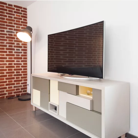Un meuble TV fonctionnel et esthétique, pensé pour intégrer vos équipements tout en valorisant votre espace.